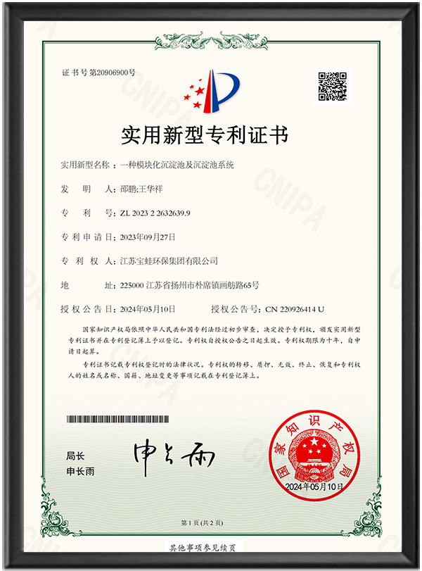 國內大中型環保集團--江蘇寶蛙環保集團有限公司,地處中國歷史文化名城揚州市經濟技術開發區內。首創于 2012 年,注冊資金 10000 萬元人民幣,占地面積 50 畝,總建筑面積 3 萬 5 千多平方米,其中廠房面積 1 萬 9 千多平方米,公司現有員工 200 余人,其中各類專業技術人員 30 余人,年產值可達 5 億元以上。自有激光切割機、加工中心、大型液壓剪板機、液壓折彎機、龍門銑床、立臥式車床、鉆床、各類進口焊機、探傷檢測儀等大中型機械加工檢測、試驗設備。并順利通過了 ISO9001:2015 質量管理體系認證、ISO14001:2015 環境管理體系認證以及 ISO45001:2018 職業健康安全管理體系認證;獲得了“全國工業產品生產許可證書”、“企業信用等級 AAA 證書”等榮譽稱號。健全的管理體系、雄厚的技術力量先進的制造設備及生產工藝、完善的檢測手段,使公司未來可獲得快速穩定的發展。
